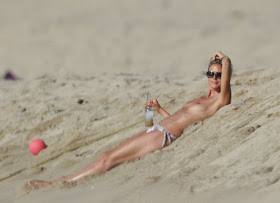 Heidi Klum showing her nice tits on beach on vacation caught by paparazzi